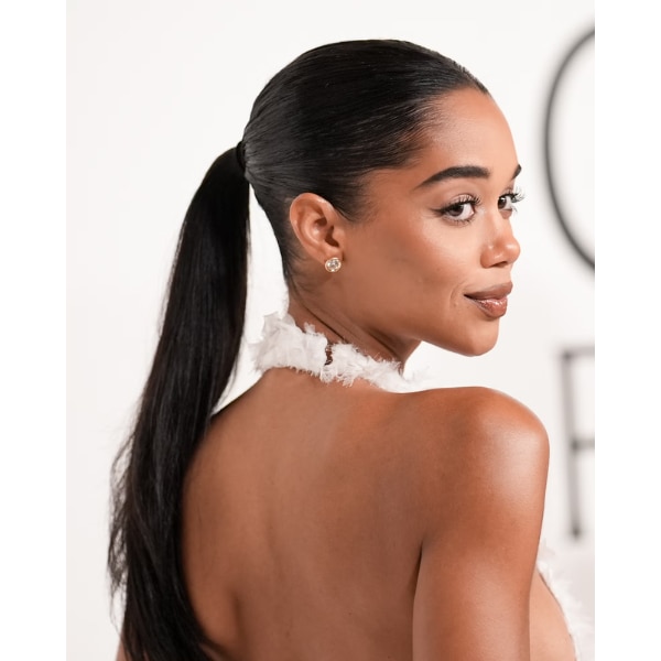 Easy and reliable, the ponytail is a year-round go-to, but it's having a moment right now. Plus, as Laura Harrier demonstrates here, it's an excellent style for showing off standout jewellery.
