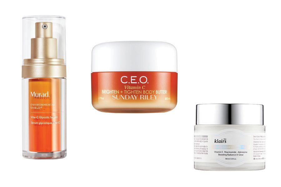 Murad Vita-C Glycolic Serum, ₹8,400 for 30ml; Sunday Riley C.E.O. Body Butter, ₹4,640 approx; Klairs Freshly Juiced Vitamin E Mask, ₹1,850