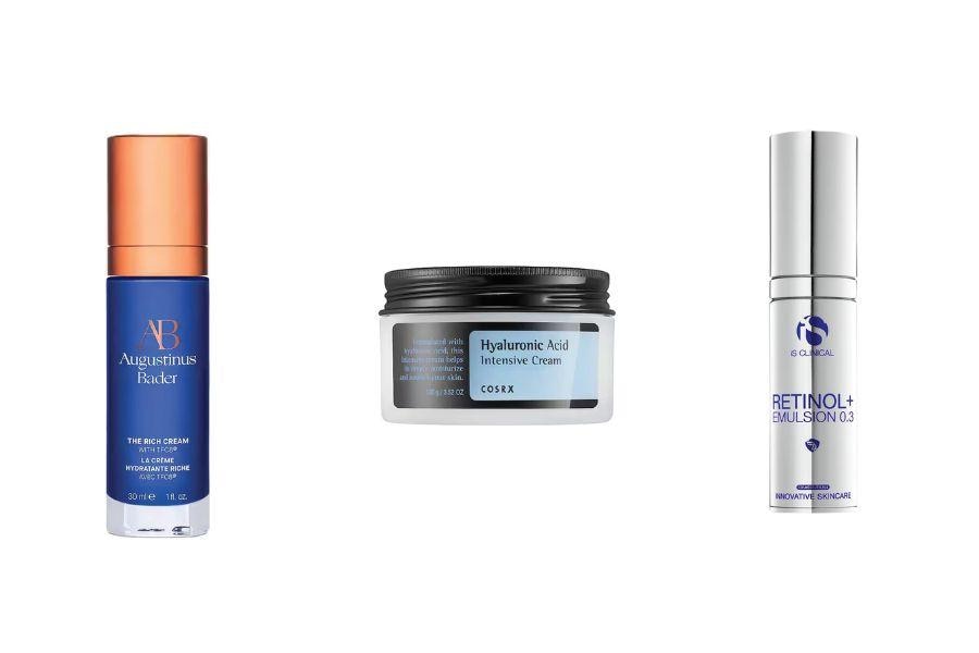 Augustinus Bader The Rich Cream, ₹16,600 for 30ml; COSRX Hyaluronic Acid Intensive Cream, ₹1,650 for 100g; iS Clinial Retinol + Emulsion 0.3, ₹10,700