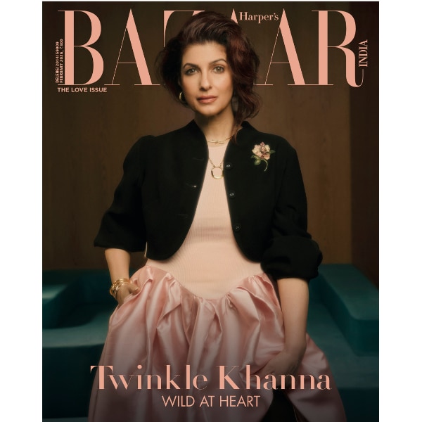 Last year, Khanna also marked 25 years of marriage. “I’ve finally accepted that I can’t change anybody,” she says because differences are meant to be celebrated, not merely tolerated. In honour of the Love Issue whose cover she so stunningly graces, I urge her to finally describe love—as an object, person, or even a scent. “I already have that creature in my life,” she says without taking a single second to pause. “He is furry. Sometimes he smells of vanilla after a bath, and sometimes of tandoori masala after spending time in the kitchen. He barks, but never bites and nobody’s ever loved me as much as he does.”