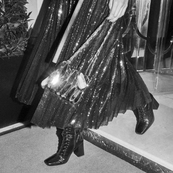 “How you style yourself for a work party matters: it shows you care. Research what everyone else is going to be wearing – Google it if it’s an event that has been photographed previously. This is not the time to go for a completely different approach from your usual look, but do err on the side of elevated. Stick to something tailored: try a smart pair of trousers that you can either wear with a silky, shimmery blouse or a simple black shirt that can be enhanced with key accessories such as larger-than-normal earrings or a glittery bag. Heels are always elegant if you can walk in them; if not, both chunky loafers and kitten-heel boots are a cool way to dress up an outfit.”