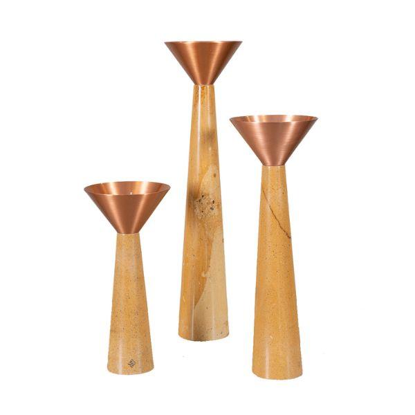 Baaya Cu Stone Candlestand Set of 3, Price on request