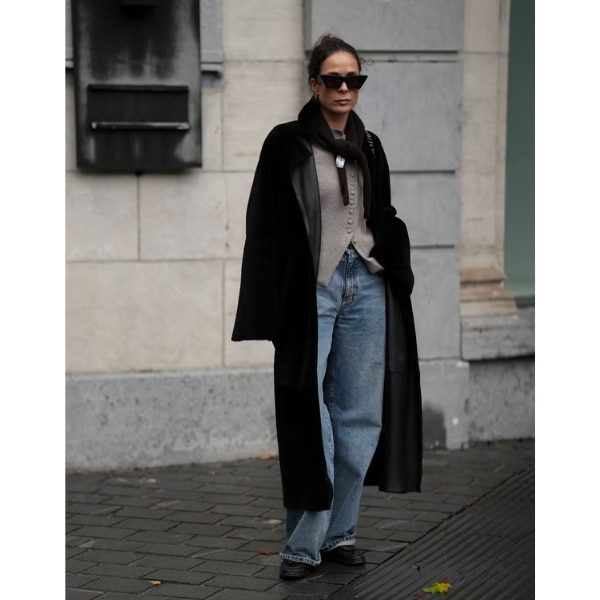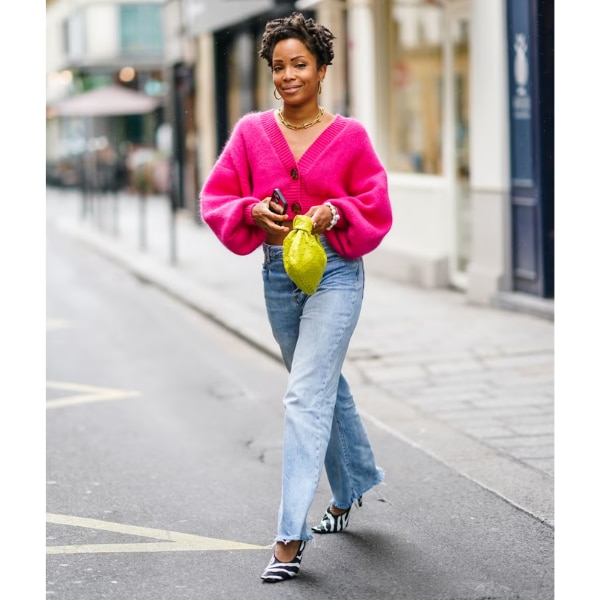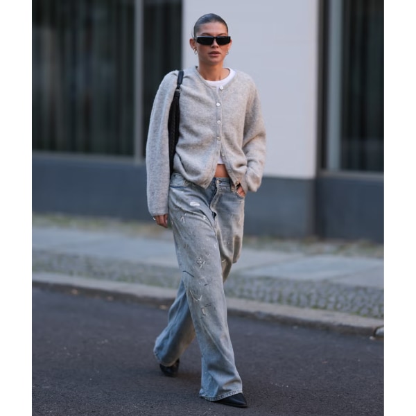 Looser-fit jeans have become 2025’s most popular silhouette, and the perfect contrast to a more feminine, fitted cardigan. Keep a few buttons undone at the top, or-for those happy to bare their abs like Berlin influencer Sophia Geiss-undo the bottom buttons, or let them sit aside the zipper.