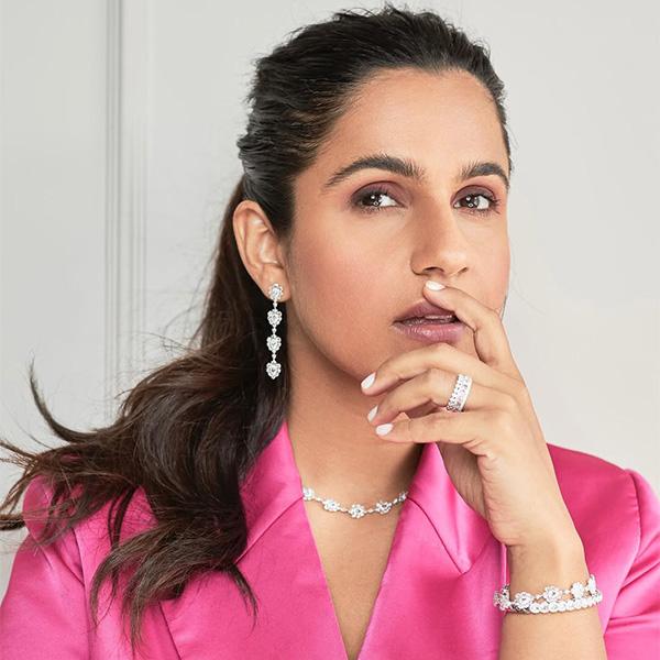 Versatility is the catchword when selecting bridal diamonds. “A classic pair of solitaire earrings or a tennis bracelet can go from wedding to everyday wear. I bought mine for the wedding. What I had done was I had stacked four of my tennis bracelets for a function,” she says. A truly iconic neckpiece, she adds, should transition effortlessly across wardrobes. It should work just as beautifully with a white shirt as it does with a sari, gown, or lehenga. Among her favourites are diamond chokers that are universally flattering and refined drop-down earrings, long enough to make a statement. “A petite bride wearing a well-placed diamond drop can look radiant without heavy layering,” she says. Virmani also stresses the importance of blending heritage with new buys. “Incorporate pieces from your mother’s wardrobe or family heirlooms. A diamond bangle or necklace passed down, paired with a new purchase, creates warmth and a complete look, and has emotional resonance having carried generations of history. Diamonds never age, they are eternal. Mixing old and new is the perfect balance.”