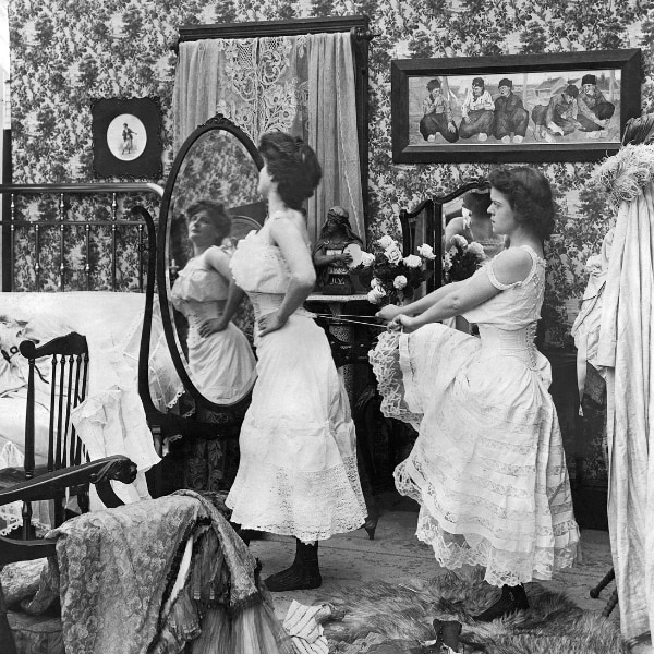 By the 18th and 19th centuries, the corset had become one of fashion history's most contested garments. Women's torsos were boned, laced, and compressed into silhouettes that served the aesthetic appetites of the era, the impossibly cinched waist of the Romantic period, the rigid S-curve of the Edwardian age. Medical professionals debated its effects on internal organs. Reformers rallied against it. And yet, it persisted because it wasn't really about health or even beauty. It was about control. The corset encoded, directly onto a woman's body, society's expectations of femininity: pliable, contained, decorative, and shaped entirely for external consumption.