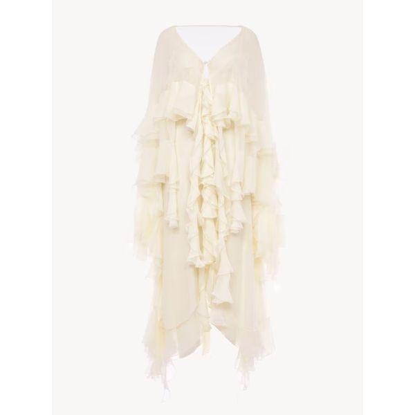 Chloe Long Ruffled Dress In Silk, ₹4,49,000