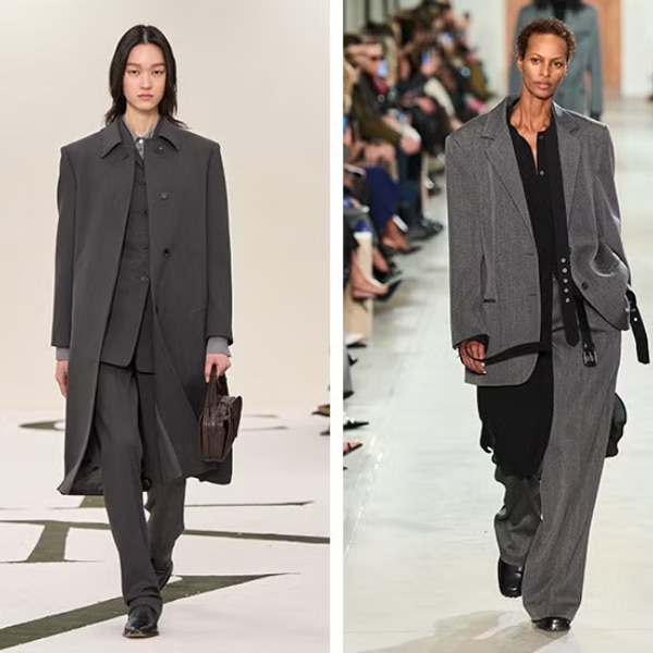 You might’ve heard the term groutfit lately, referring to an all-gray outfit. We spotted these sleek monochrome gray looks on the runways at Calvin Klein, Michael Kors, and Miu Miu, as well as on celebs such as Kendall Jenner and Zoë Kravitz. The key is to start with a warm topcoat (choose from double-breasted or wrap-coat styles) in a cool charcoal shade, then pair it with complementary pieces like a gray cashmere sweater and a wool skirt.