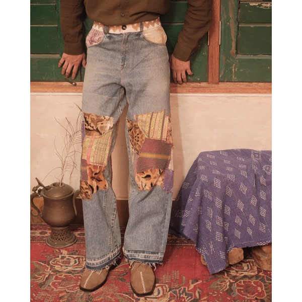 Kartik Research treats denim as a living textile shaped by handwork and heritage processes. Using upcycled denim, natural indigo dyes, and artisanal techniques like kantha stitching and block printing, the label creates menswear that feels collectable and deeply rooted in craft. From patchwork jeans to embroidered jackets and even footwear, denim becomes a medium for storytelling. Each garment highlights slow fashion values, celebrating imperfection, texture, and longevity.
