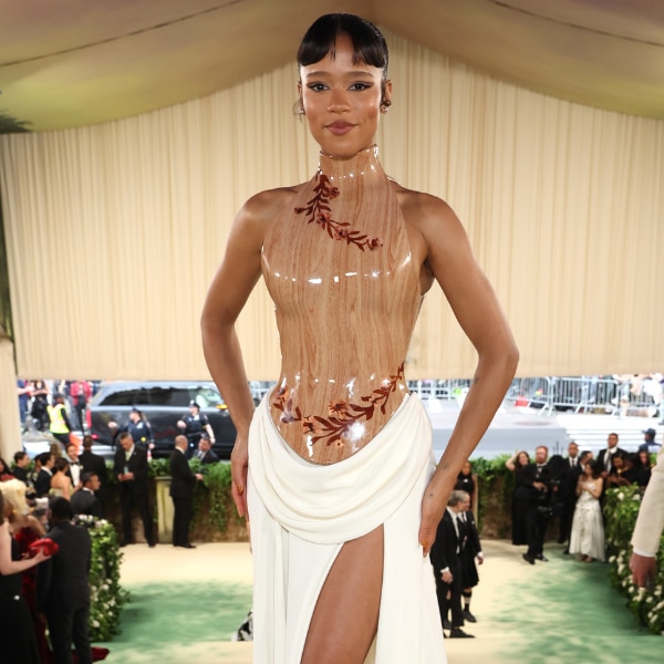 At the 2024 Met Gala, Bones and All breakout star Taylor Russell turned heads in a sculptural high-neck, wooden corset by Loewe. It was undeniably ethereal, anatomical, and unforgettable. The corset was custom-made for the starlet—3D printed to fit her perfectly, before being painted using a method called hydro-sublimation, a technique which Loewe had previously used in their 2023 collection.