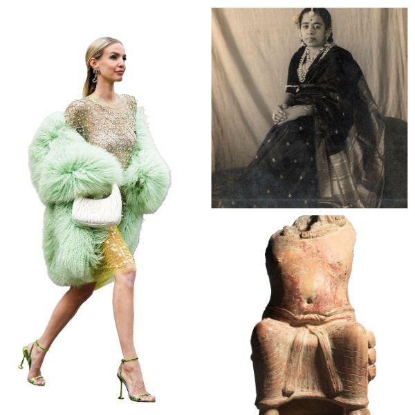 In India, as history has borne out, people have gone to great lengths to not simply dress for an occasion but to always dress, as we put it now, extra. In the famed Indus Valley Civilisation, beads, bangles, patterned shawls, and styled hair far exceeded survival needs. Even if we don’t go so far and look at early historic India, the Mauryan–Shunga–Kushana period, sculptures show ordinary people layered in jewellery, pleated garments, anklets and belts.