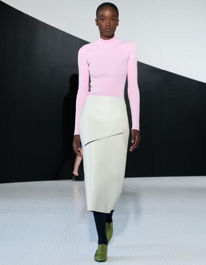 For the Spring 2026 season, Simone Bellotti was tasked with envisioning the next instalment of the house of Jil Sander. He delivered not so much a reimagining of the brand as a revival of Sander’s original minimalist vision, forgoing the oversized shoulders and chunky footwear of his predecessors, Luke and Lucie Meier, for the streamlined silhouettes and practical yet intellectual purity of its founder. Bellotti diverged only slightly from the line of the body, and when he did, it was purposeful. He made sparse slashes in the fabric à la Lucio Fontana’s works of art. He deployed colour boldly yet sparingly. Every wrinkle in the fabric was intentional, every peak of a collar steadfast. He allowed each detail to sing.