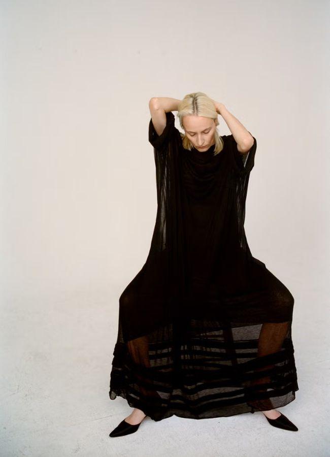 In her debut collection for Fall 2024, she created a felted box jacket that they’ve been iterating on ever since. Its construction is “deceptively simple,” with a single seam in the center back and slits as armholes. “It is almost square in shape when laid flat, but when it drapes on the body it is totally transformed in a way that is flattering and not rigid.” That sort of unfettered clarity in design, she reiterates, is what’s missing from today’s conversation surrounding minimalism in fashion.