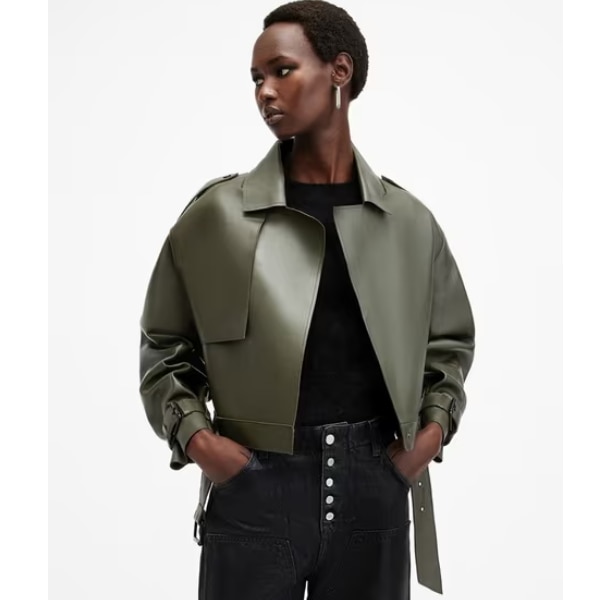 All Saints Ophelia Cropped Bonded Leather Jacket, ₹69,999