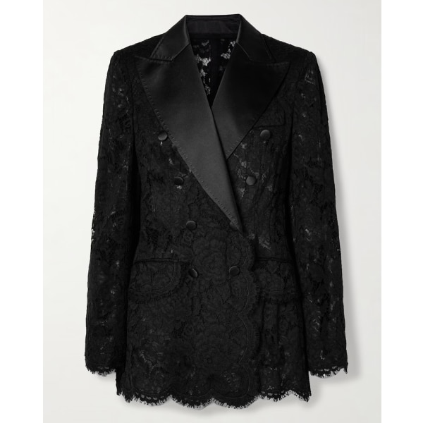 Dolce & Gabbana Double-Breasted Satin-Trimmed Corded Lace Blazer, ₹4,30,013 approx.