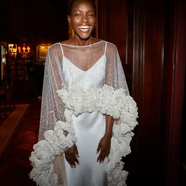 "There’s a renewed desire for understated yet unmistakable glamour," explains Packham, who has dressed everyone from Angelina Jolie and Kate Winslet to Taylor Swift and Catherine, the Princess of Wales. "Brides are gravitating towards sleek column gowns cut in fluid crepe, delicately embellished with crystal tracery or soft pearl accents—refined, sensual and quietly powerful." Also popular? Capes and tailored statement jackets, which bring a sense of "modern drama", while "celestial embroidery" is having a moment. When it comes to silhouettes, brides are opting for something timeless—but with "a contemporary edge".