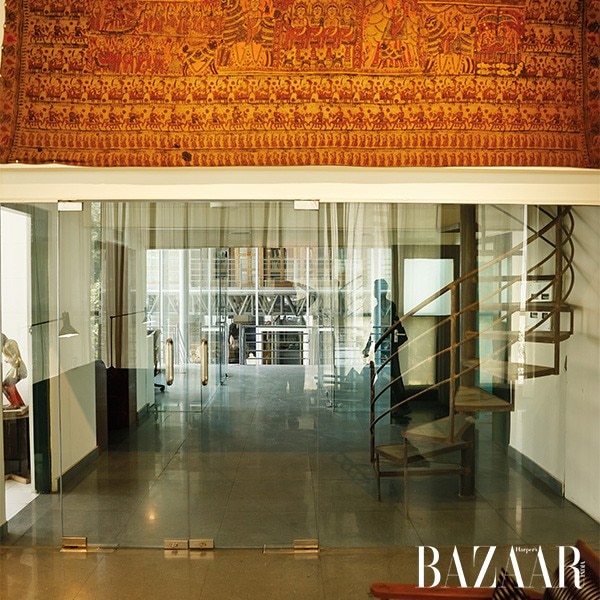 There’s more; contrasting icons of rituals, like Catholic statues, find space alongside Jaffna sculptures and 19th-century metal chairs in different shapes surround a huge table in the conference room. I am told the chairs are uncomfortable and could be Garg’s way of keeping the meetings short. The designer laughs at the jest thrown around by a team member. Across the conference room and upstairs, there is a library of his archival materials. Gigantic clay and brass vessels line the ground floor—the space is nothing short of a maze-like sanctuary, one that serves as a constant reminder to revive lost narratives.