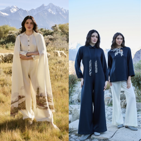 The Winter 2025 collection, The Lost Valley, draws inspiration from the forgotten trails of the Silk Route. Shot across the hidden valleys of the Himalayas, the campaign captures a sense of stillness, strength and quiet resilience. This season introduces luxury outerwear crafted from a rare blend of goat cashmere and silk, alongside softly structured silhouettes, metallic-thread embroideries, and hand-illustrated prints inspired by mountain landscapes. The result is a collection that feels intimate, thoughtful and deeply rooted in storytelling.
