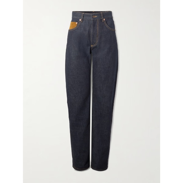 Bottega Veneta Intrecciato Suede-trimmed High-rise Straight-leg Jeans, ₹116,889 approx.