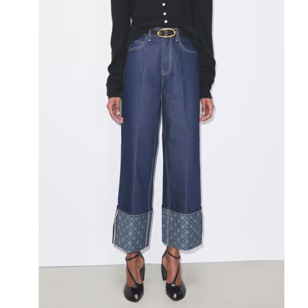 Tory Burch Monogram Contrast Cuff Straight Leg Jeans, ₹49,999