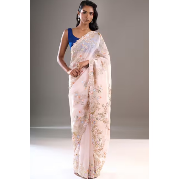Anamika Khanna Pink Embroidery, Metallic Thread Floral Saree With Unstitched Blouse Piece, ₹236,25