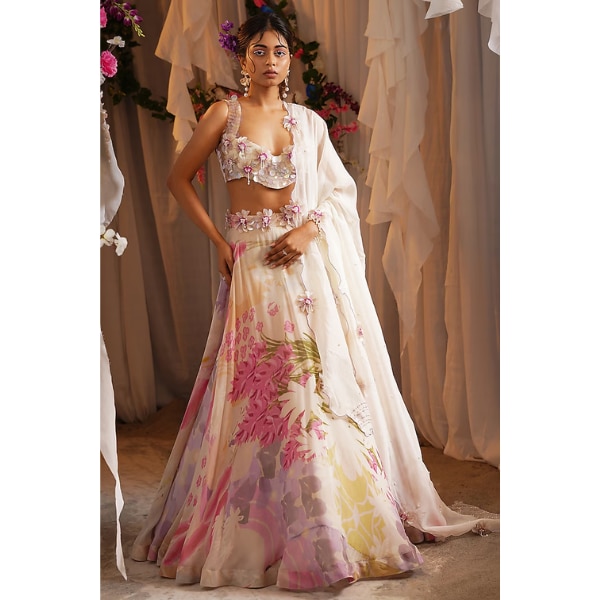Shwetanga Multi-Colored Cotton & Organza Garden Printed Lehenga Set, ₹47,500