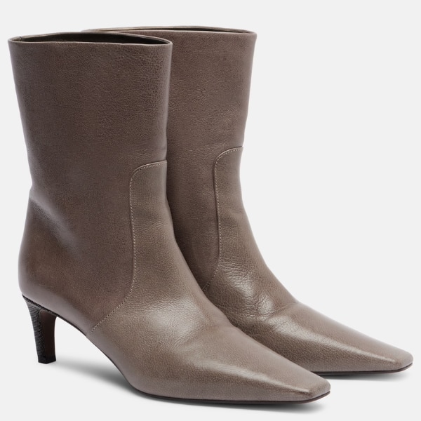 Brunello Cucinelli Monili Leather Ankle Boots, ₹1,21,651