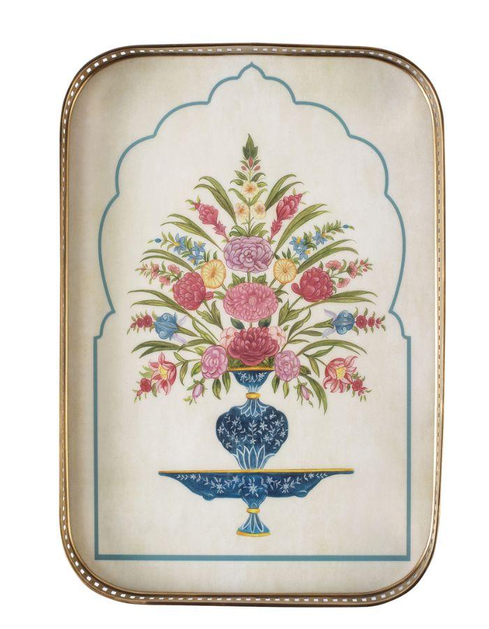Good Earth X The Palace Atelier Jaipur Rose Guldasta serving tray, price on request