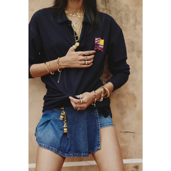 She adds that the brand embraced both tradition and technology. “Some charms were first sketched entirely by hand and then translated onto CAD, merging the softness of hand-drawing with the precision of digital structuring.” The collaboration wasn’t limited to jewellery but also extended into Pachranga-striped shirts, cotton patch dresses, saris, and even socks, tying the whole collection into one coherent edit. The result is a collection that reinterprets one of Rajasthan’s most distinctive symbols through a lens of modern simplicity, fluidity, and playfulness—heritage not as an anchor, but as a springboard for renewed imagination.