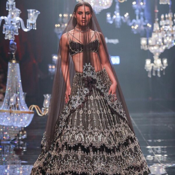 Shantnu and Nikhil's collection, Capella, drew inspiration from the opulence that was served by the Baroque Era. They revisit elements like the veil to accentuate the sensuousness and beauty of movement.