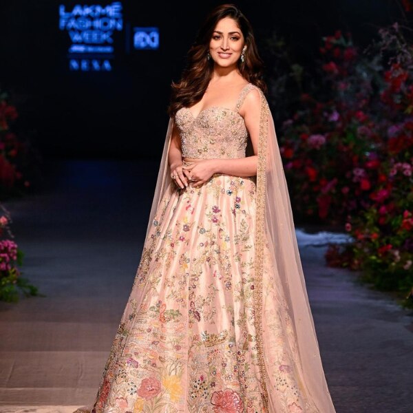 Yami Gautam walked the ramp for designers Shyamal and Bhumika in a cream hued lehenga choli with floral motifs and a cape-styled dupatta. Their entire collection featured hand-embroidered statement-making outfits using age-old craft techniques.