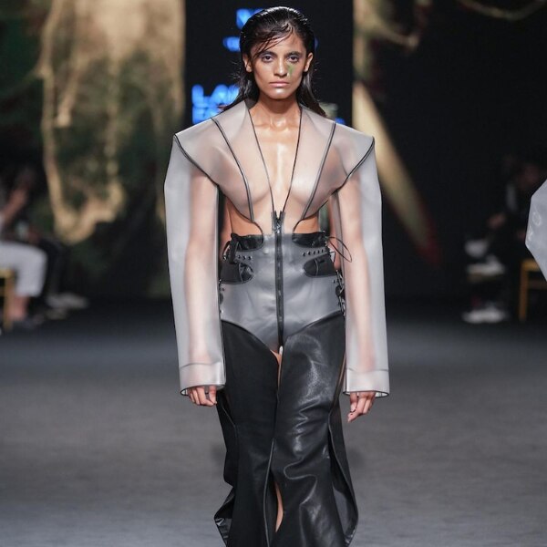 Hot on the heels of its Paris Fashion Week debut, Akshat Bansal (creative director of Bloni) presented his new collection that attempted at bending the rules of fashion. These outfits were a cocktail of futuristic designs and technology. From square-shouldered tops and leather-bondage detailed dresses to body suits with cutouts, this collection deserves all the hype surrounding it. Of course, the trapeze artists and the aerial dancers helped its cause.