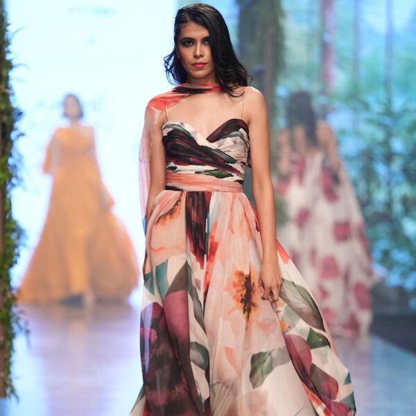 Gauri and Nainika's collection featured dresses with bold floral motifs, ruffles and romantic silhouettes. All the outfits were made from sustainable, eco-friendly fabrics. PET bottles, for instance, are manufactured into wearable material instead of winding up in the ocean. They're propelling the green movement in fashion.