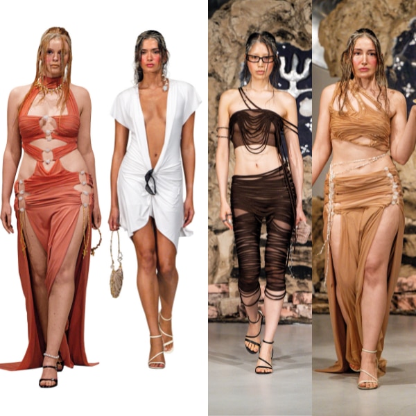 Greek designer Dimitra Petsa’s eponymous label has long been famous for its ecofeminist examination of the relationship women’s bodies share with natural forces. In the past, Petsa has taken the world by storm with her viral “wet look” which even appeared in a sari avatar on Indian actress Janhvi Kapoor at the 2025 Cannes Film Festival, as a homage to her mother and actress Sridevi’s iconic drenched, chiffon sari looks.