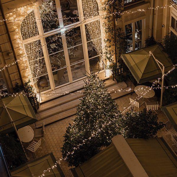 Sparkling façades and two monumental trees, adorned with gold and silver ornaments, greet the guests at the entrance. Inside, the Christmas trees, embellished with ornaments from Christofle’s Bouquet Givré collection, pay tribute to winter’s vegetal beauty and culminate in a majestic tree set at the foot of the Heritage Staircase. In the lobby, the silversmithing Maison also showcases its Perspectives collection, the result of a unique collaboration with artist Mathias Kiss, whose work has previously graced the hotel. And at the heart of Bar Les Ambassadeurs, a Haute Orfèvrerie masterpiece depicting a horse, is exhibited in celebration of the Chinese New Year 2026—making the property a perfect visit this holiday season.