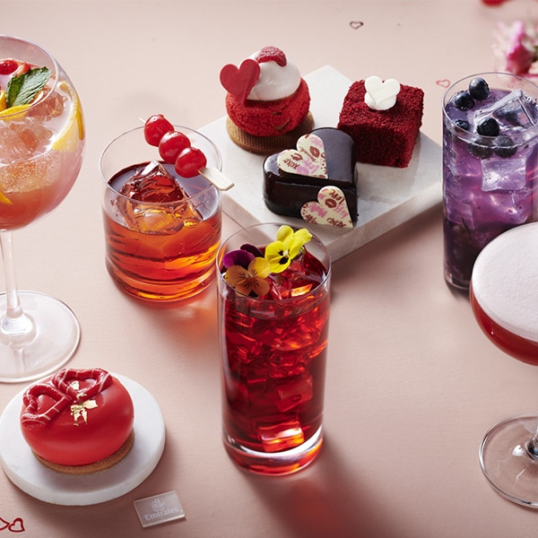 The Emirates Lounges greeted customers worldwide with thoughtfully crafted menus. Heart-shaped ravioli was featured in Rome, chocolate-dipped strawberries in Sri Lanka, and Valentine's cupcakes in Cairo. In Dubai from 13th-15th February, First Class customers were served a grand curation of à la carte and buffet appetisers, main courses, as well as rich desserts. From raspberry vanilla cake to pistachio strawberry cake and more, the treats were paired with Moët & Chandon rosé Champagne, as well as a variety of Mocktails and Cocktails that were romantically named, such as Love Potion and Whispered Hearts.